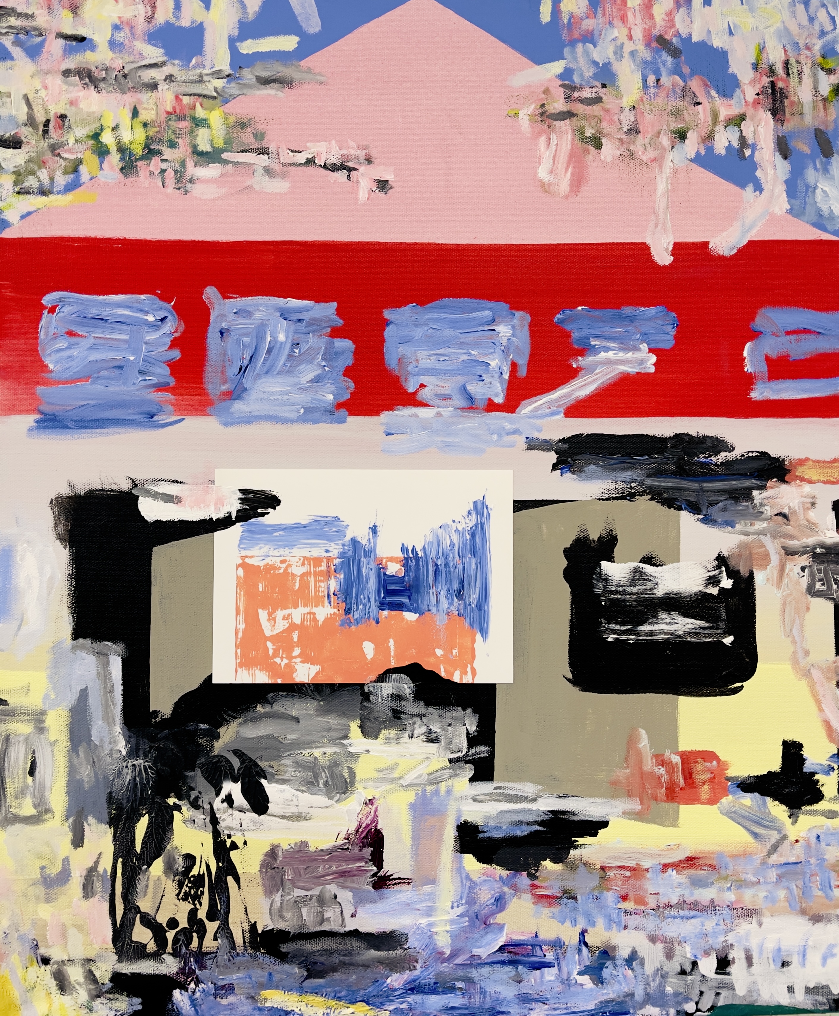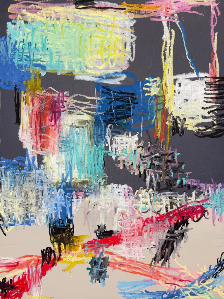 His recent abstract work approaches natural relationships, and universal constants. He is inspired by the interactions he sees around him, the degeneration of the past and its friction with a developing present, which he rephrases as color, gesture, and light.